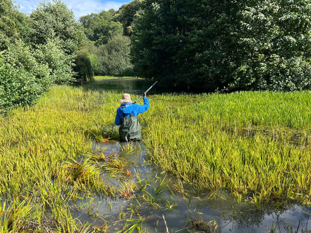 The video shows no, not Phil doing a strange water dance, but a demonstration of kick sampling. It does look very enthusiastic (!) but he went out of his way to assure us that this won’t harm any creatures, and that all the samples taken were alive. We collected samples of creatures and took them up to the house to identify under microscopes. The weather was beautiful which meant that we could do this outside.