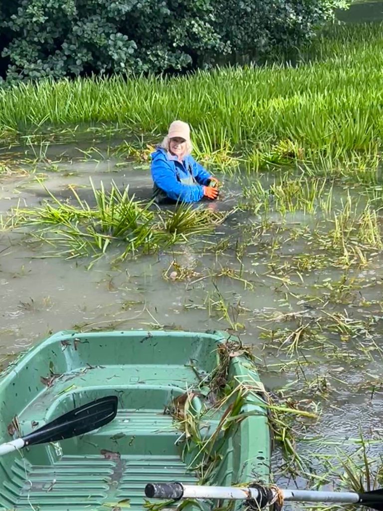 The Wetland Duo, Guy Hart and David Armitage plus David’s partner Lyn, were hard at work recently removing the highly invasive plant, Water Soldier, from the lake at Greenstreete. It has proliferated so much over the summer that they weren’t able to remove all of it but arrangements are in progress for volunteers to continue the work.